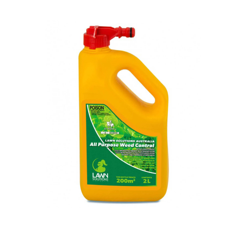All Purpose Weed Control is a broad leaf herbicide, a weed killer designed to control Bindii (jo-jo), Creeping Oxalis, Catsear, Clover, Cudweed, Plantain, Thistles, and Dandelion. This is suitable for established Couch, Bent, Kikuyu, Paspalum, Buffalo, Zoysia, Fescue and Rye lawns.
